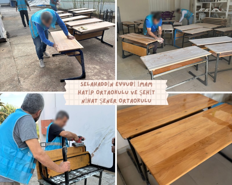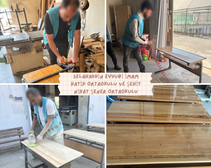 * Selahaddin Eyyubi İmam Hatip Ortaokulu ve Şehit Nihat Şener Ortaokuluna ait 50 adet okul masası yenilenerek teslim edilmiş ve 120 adet okul masasının çalışmaları devam etmektedir.