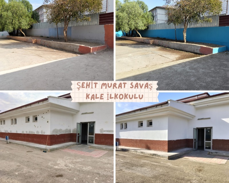 * Şehit Murat Savaş Kale İlkokulunda 975m² dış cephe ve ihata duvarı boyanmıştır.