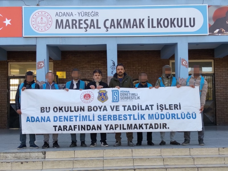 Yarıyıl tatili süresince 13 devlet okulunun fiziki koşullarının iyileştirilmesi amacıyla Adana Denetimli Serbestlik Müdürlüğü koordinesinde; sahada aktif olarak görev yapan 6 mobil boya, 2 mobil klima ve 2 temizlik ekibindeki toplam 5 usta öğretici ve 124 yükümlü ile;